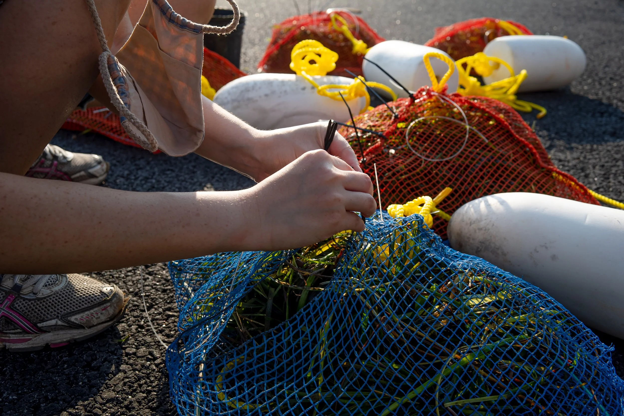 In August 2021, a few friends and volunteers came together to sow four trial sites (SUNY Maritime College and Soundview Park in The Bronx, Little Bay Park in Queens, and Conference House Park in Staten Island) with eelgrass or Zostera marina seed.